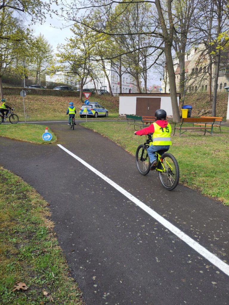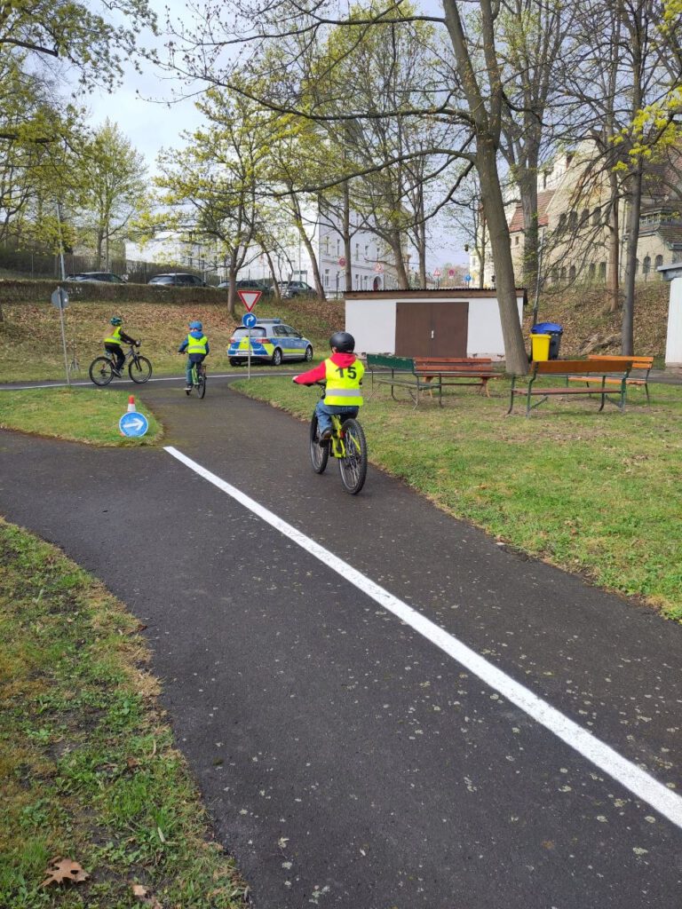 Bald ist es so weit – die 5. Klasse macht sich auf den Weg zu ihrer Klassenfahrt. Dafür übten sie Verkehrszeichen und Regeln im Straßenverkehr und übten auch im Verkehrsgarten mit der Polizei.